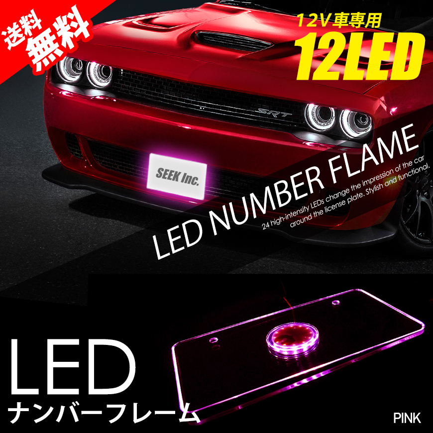 > LED ナンバーフレーム ピンク 12V 美光 アクリル 防水 ナンバープレート 国内 点灯確認 検査後出荷 宅配便 送料無料