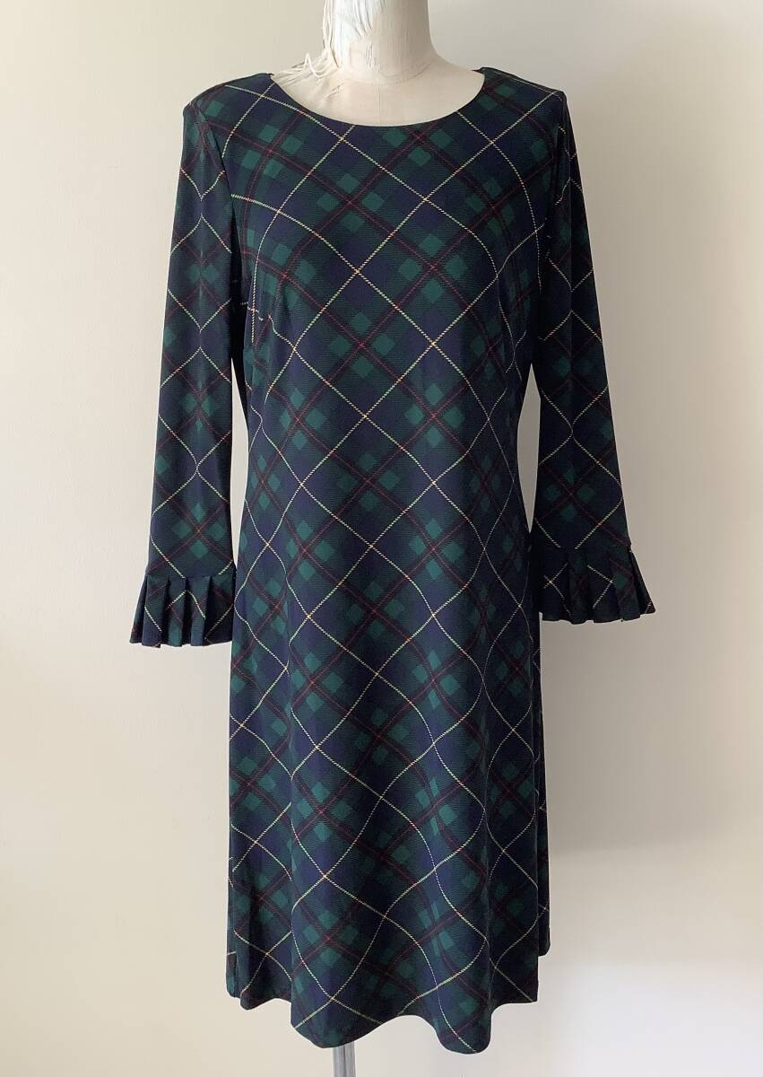 > セール☆TOMMY HILFIGERトミーヒルフィガー新品8♪グリーンチェック袖口プリーツワンピース