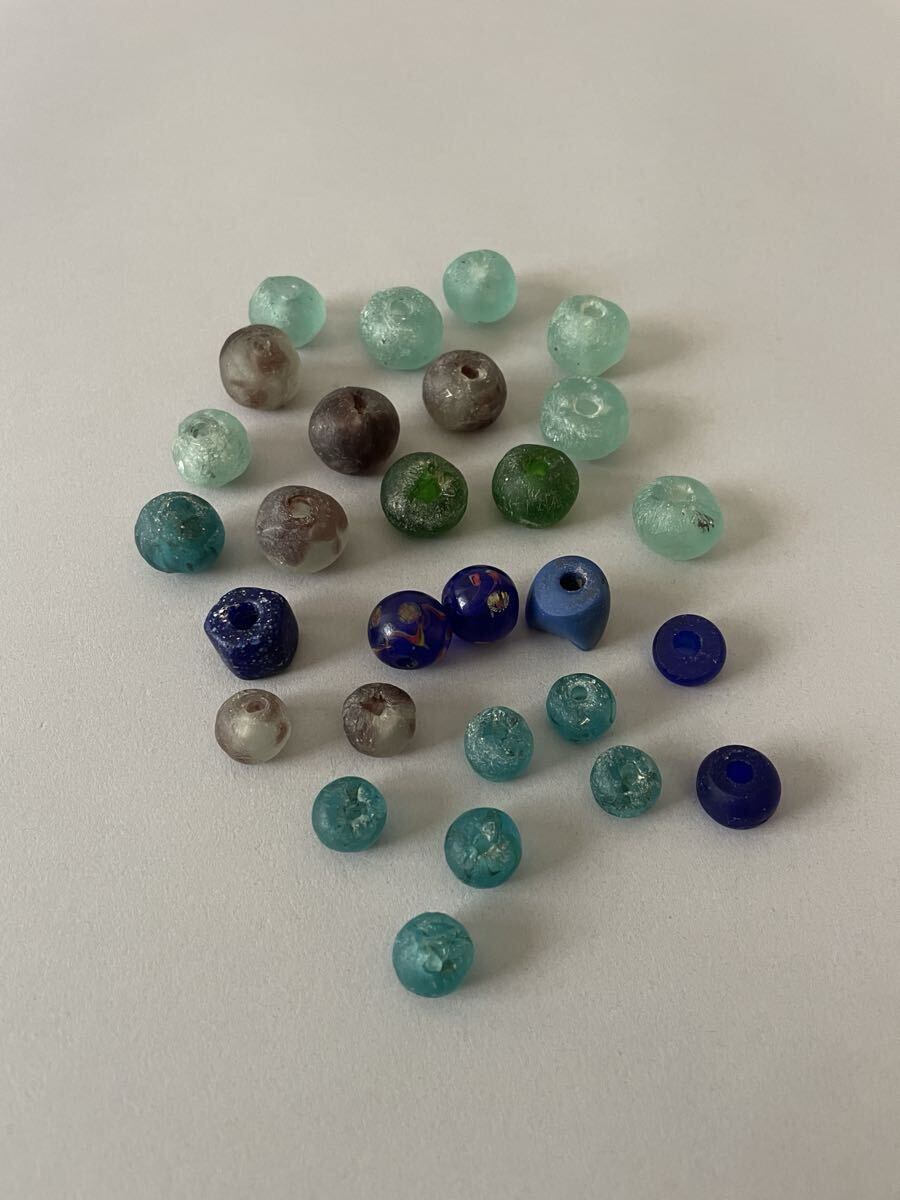 - とんぼ玉 28個 / トンボ玉 硝子 ガラス アクセサリー 緒締 和装 ネックレス 首飾り ビー玉 アイヌ 民族 工芸 民芸 古美術 ビーズ 提げ物