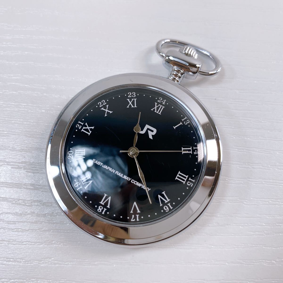 - 376【中古】JR東日本 発足20周年謝恩 新幹線スタンプラリー オリジナル 懐中時計 シルバー 文字盤ブラック クォーツ 動作未確認 現状品