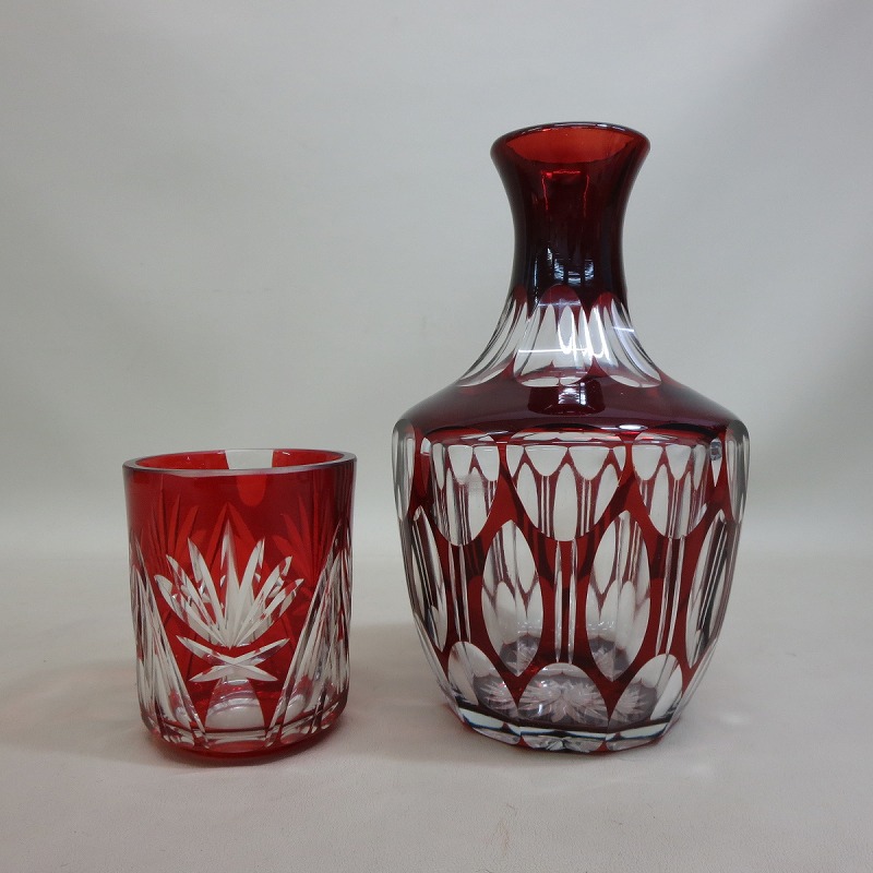 - 1◇古い切子グラス 水指差しセット◇昭和レトロ ガラス工芸 切子◇6