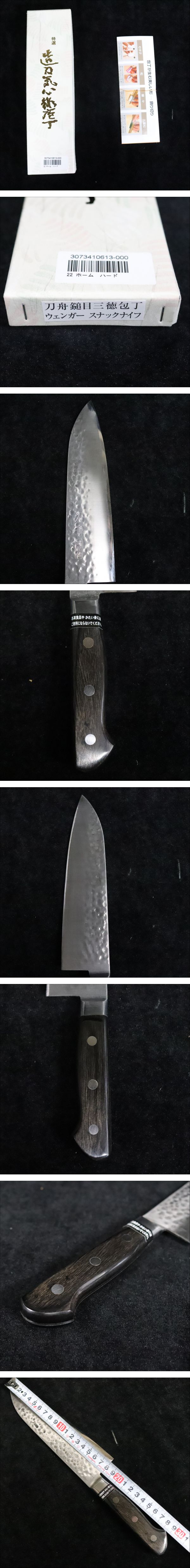 - 【美品】刀舟 ウェンガー スナックナイフ 鎚目三徳包丁 全長約30cm 刃渡り約18cm SS超鋼 多重層鋼 万能 元箱付き 特選_LFM_C1112-F01C