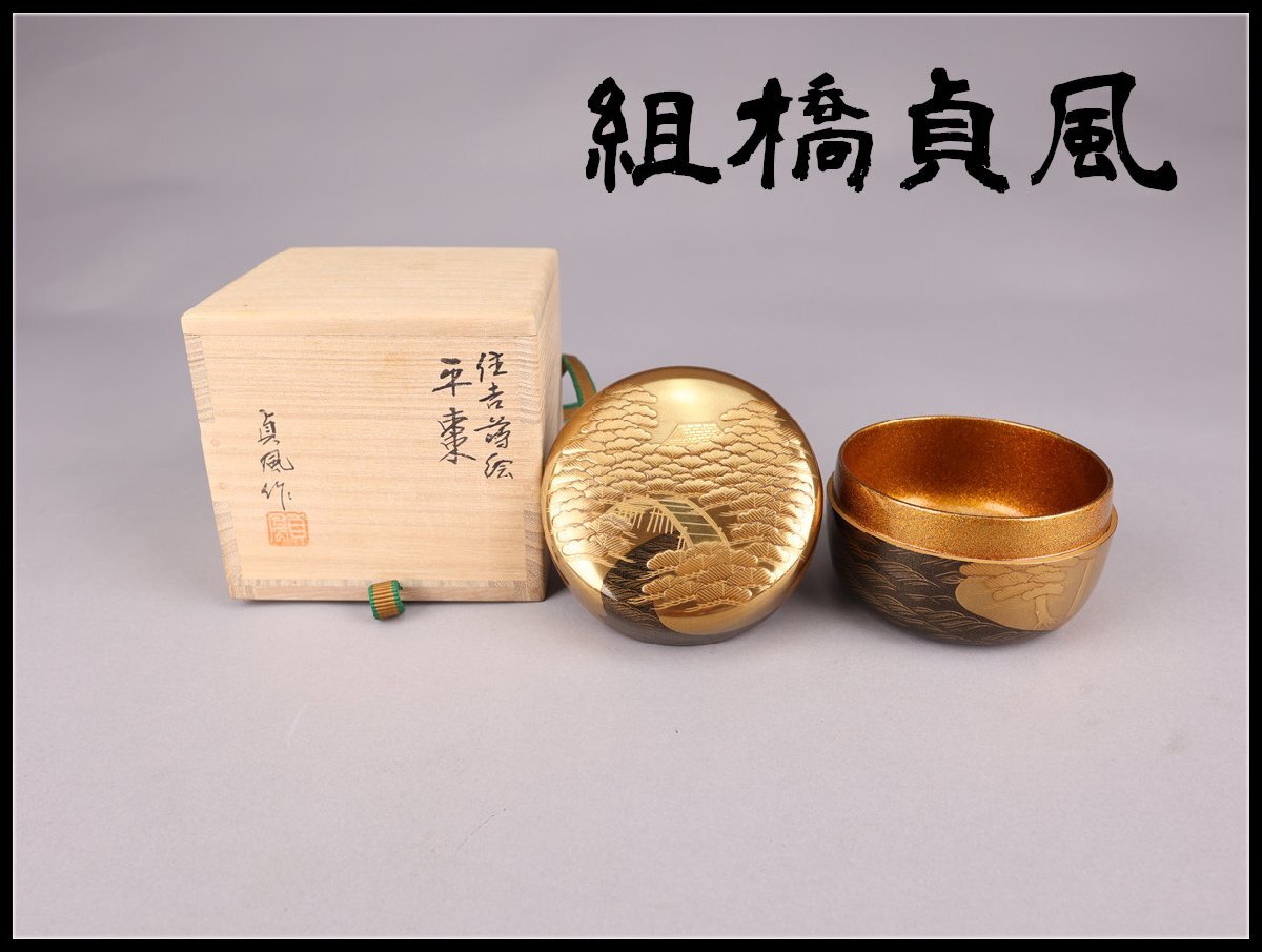 【志】A684住吉蒔絵平棗 組橋貞風作 金蒔絵 金梨地 茶道具 茶入 共箱