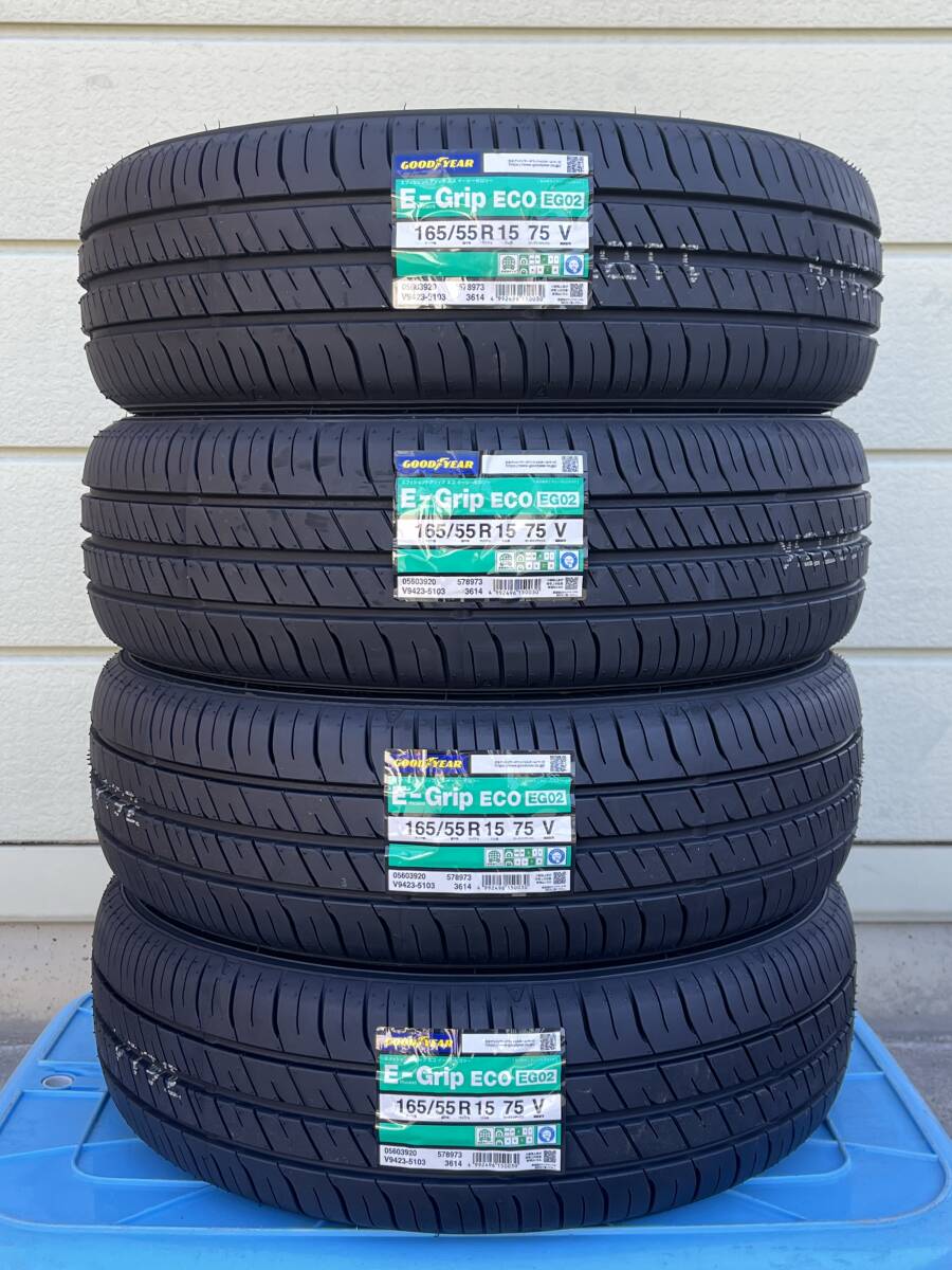 > ☆2025年製 個人宅 25,700円 ~。(EG02-37)法人、個人同一送料。インボイス可 在庫あり グッドイヤー 165/55-15 EG02