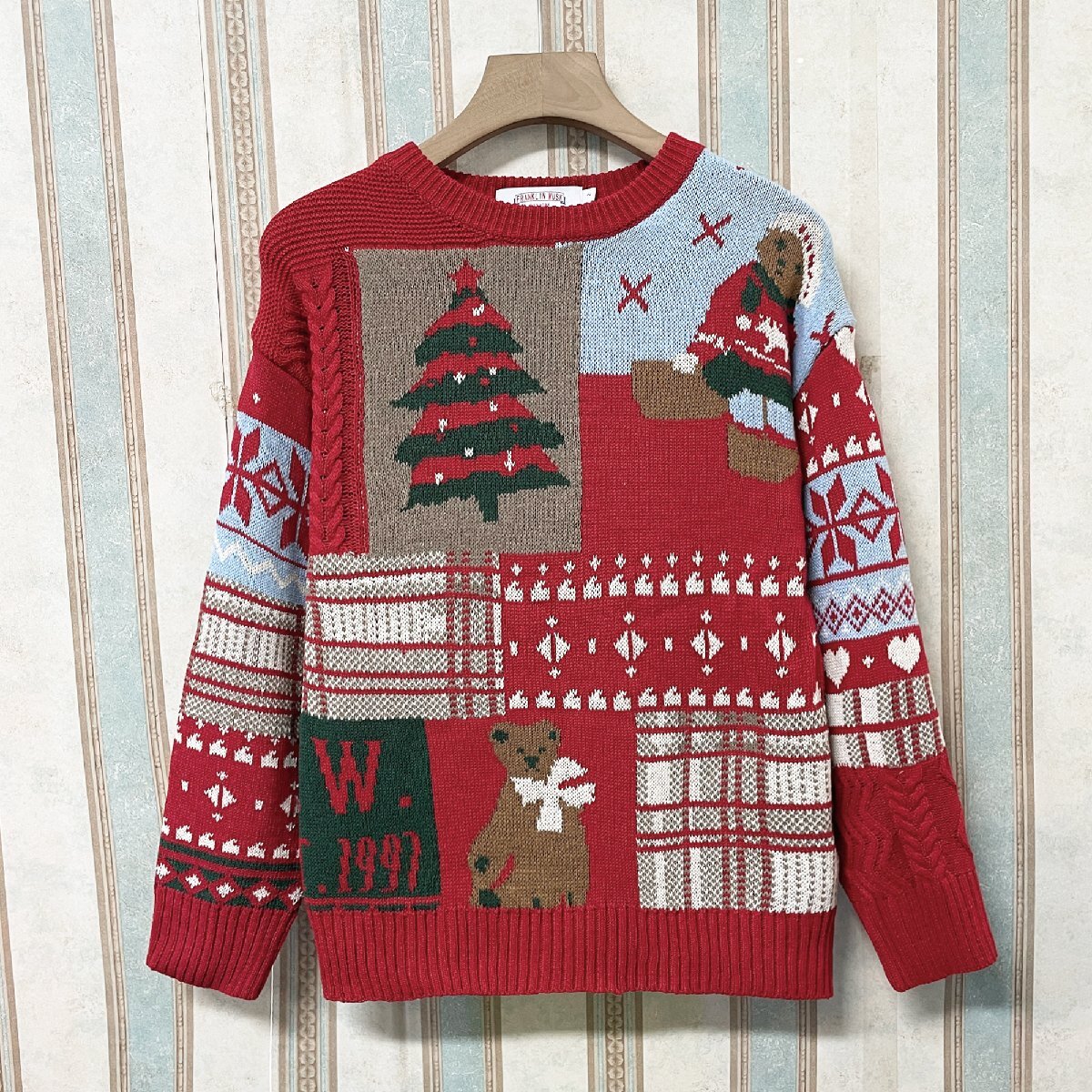 - 個性 定価5万 FRANKLIN MUSK・アメリカ・ニューヨーク発 セーター ウール混 暖かい 可愛い ツリー柄 ニット トップス クリスマス サイズ1
