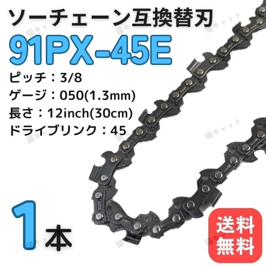 - チェーンソー 互換替刃 91PX-45E 91VXL-45E H35-45E 63PM3-45 オレゴン スチール ガイドバー 12インチ 30センチ ソーチェーン 1本 91PX45E