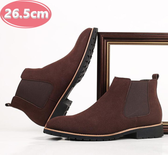 > サイドゴア メンズ ビジネス PUレザー シューズ ダークブラウン 26.5㎝ 革靴 靴 カジュアル 屈曲性 通勤 軽量 インポート品【n155】