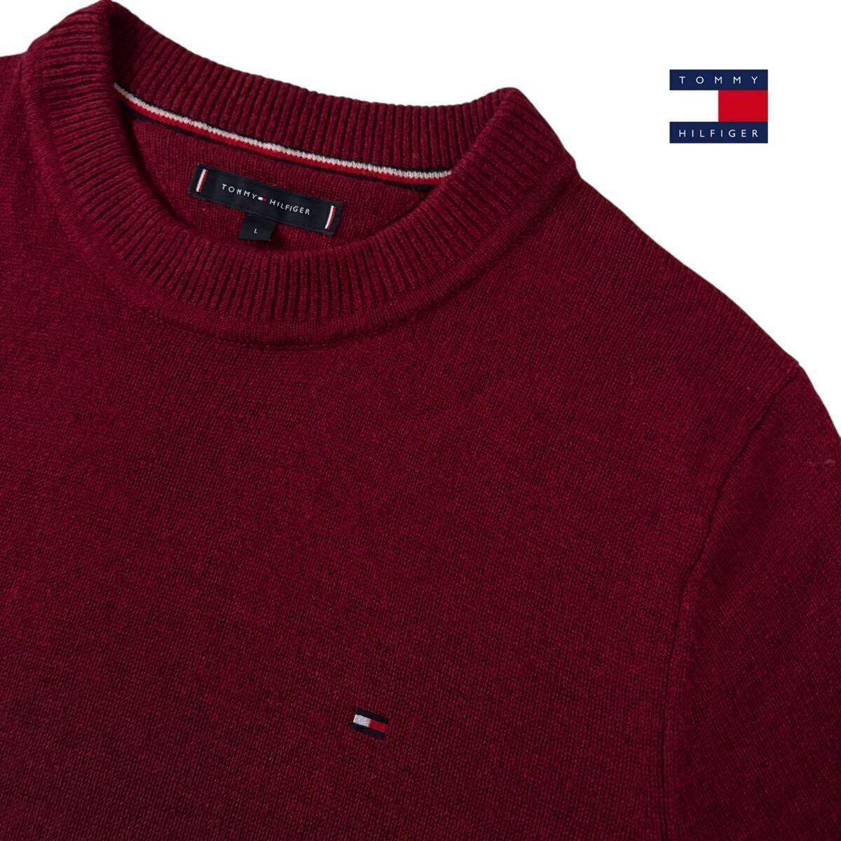 - トミーヒルフィガー TOMMY HILFIGER クルーネック ウール ニット L ワインレッド セーター