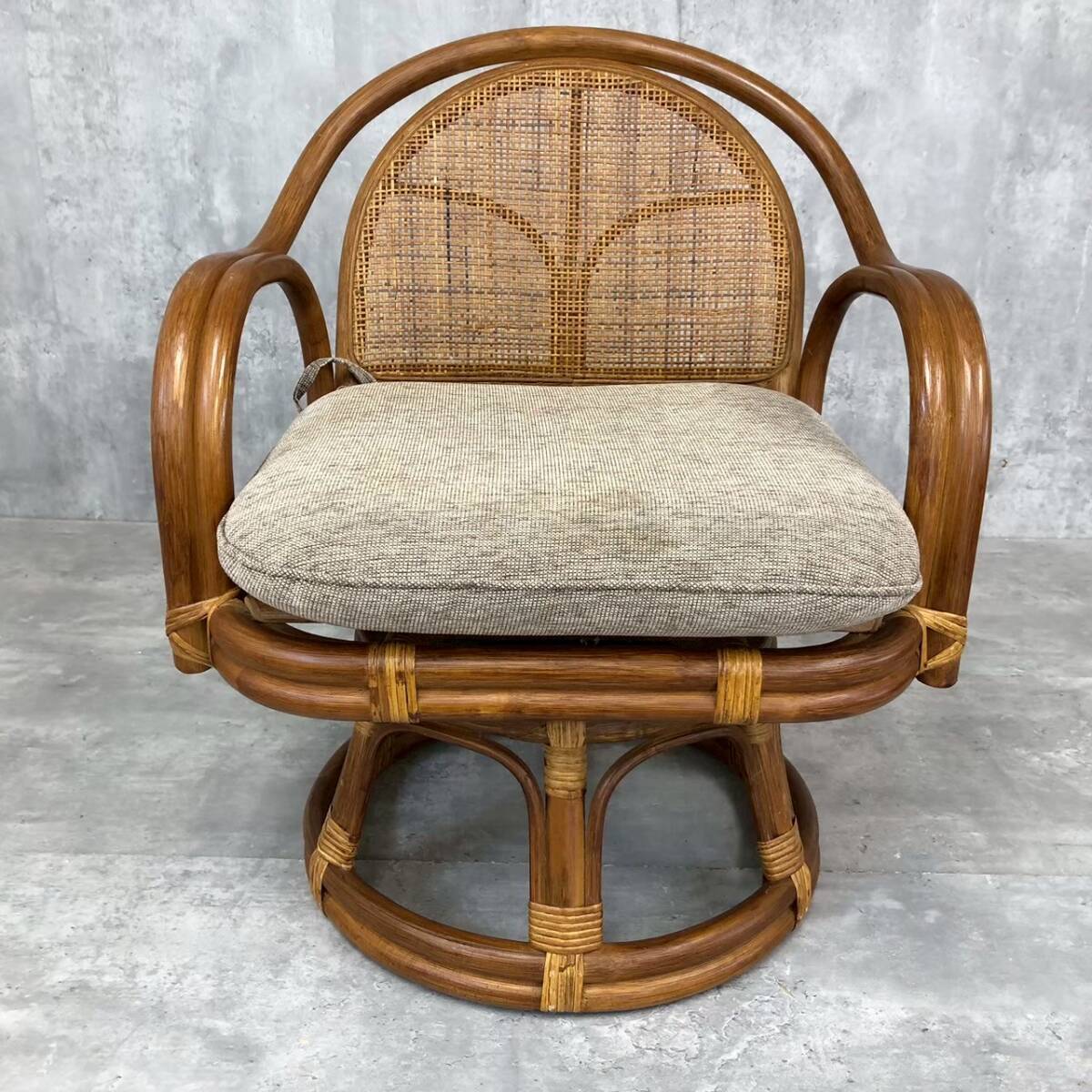 - 昭和レトロ ラタン 回転チェア クッション 籐家具 椅子
