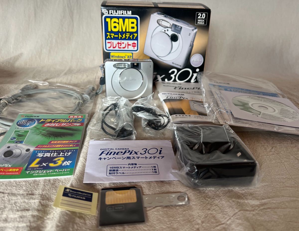 > T11-26-1 FUJIFILM FinePix 30i 単三乾電池式 コンパクトデジタルカメラ デジカメ スマートメディア16MB シルバー 動作品 元箱・付属品