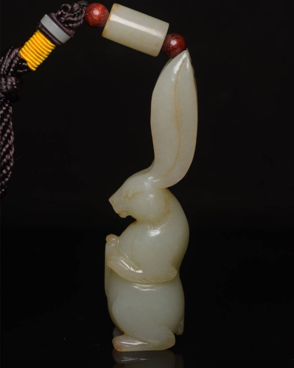 - 旧蔵 和田玉彫 兔 根付 中国古玩 骨董品 時代物 稀少唐物