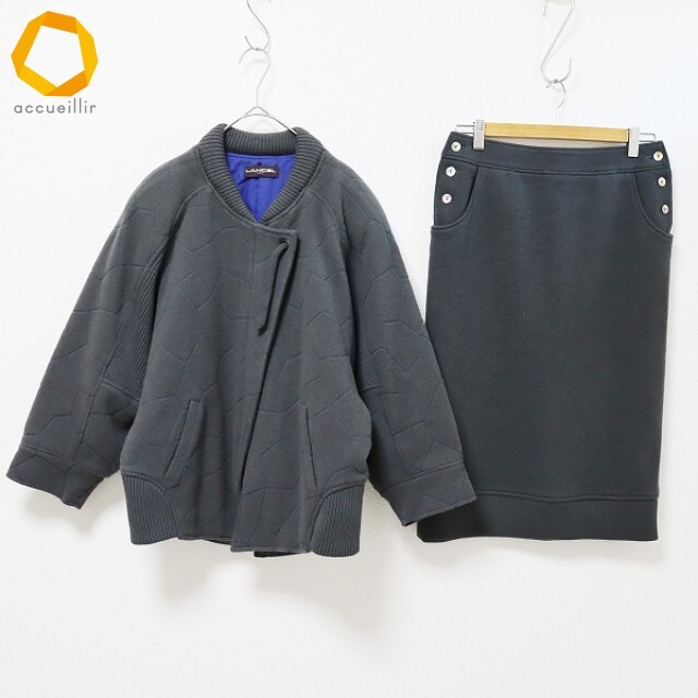 ◎商品名(タイトル):ランセル LANCEL セットアップ スカートスーツ ブルゾン タイト スカート ジップアップ [w981021n]◎ブランド名:ランセル LANCEL◎アイテム名:セットアップ スカートスーツ ブルゾン スカート◎サイズ:M◎性別:レディース◎カラー:濃いグレー系◎素材:画像をご参照ください◎実寸サイズ:(トップス)ゆき丈約 72cm・着丈約 55〜65cm・胸囲約 53cm×2 (スカート)ウェスト約 34cm×2・ヒップ約 45cm×2・スカート丈約 65cm◎商品コメント:★当店の商品はすべてリユースアイテムとなります。特質上、些細なダメージは記載しておりませんので着用に問題のない使用感、着古した雰囲気などはご了承くださいませ。◎コンディションレベル:目立った傷や汚れなし◎コンディション備考:-キーワード/アクイール/古着/used/ビンテージ/ヴィンテージ/レトロ/昭和/タイトスカート/総デザイン/福助株式会社/脇リブ/裾リブ/ジャケット/ブルゾンジャケット