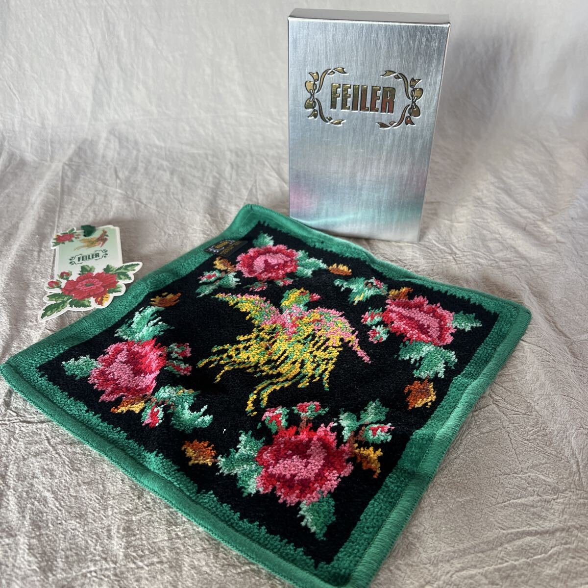 - T11-26-7 フェイラー FEILER ハンドタオル 23、5×24㎝ 花柄 タオルハンカチ 箱付