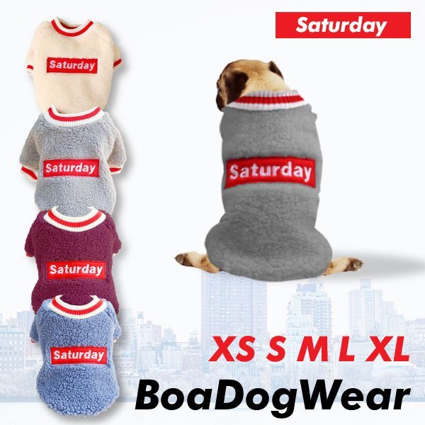 - 送料無料 Saturday ボア起毛トレーナー 選べるサイズ&カラー ペット 犬 防寒 あったか ドックウエア 散歩 クリスマス 刺繍 パーカ 秋 冬服