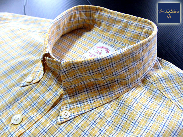 > ★美品 ブルックスブラザーズ BROOKS BROTHERS ボタンダウンシャツ 長袖 Lサイズ 希少品 ハンサムチェック イエロー×ブルー×ブラック