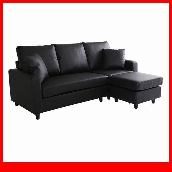 - ソファ★北欧インテリア 3人掛け コンパクトカウチソファ クッション付き/PVC ポケットコイル S字バネ 天然木脚/PVCブラック/限定 特価/a5