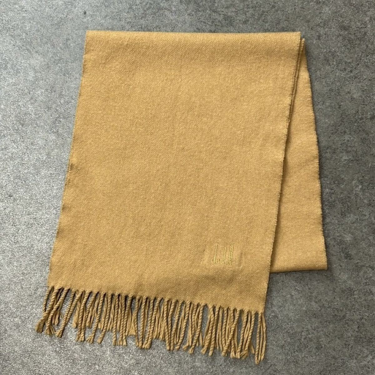 > スコットランド製 dunhill ダンヒル カシミヤ 100% ストール マフラー フリンジ ロゴ刺繍 ベージュ 無地 小物 男女兼用