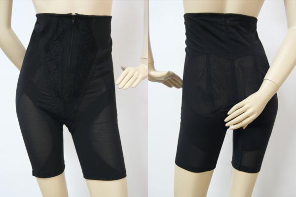 - 送料無料◆綿混メッシュ◆前開きジッパータイプ◆お腹押さえ効果◆ニッパー付き◆ハイウエストロングガードル【90/ブラック】(3L~4L)