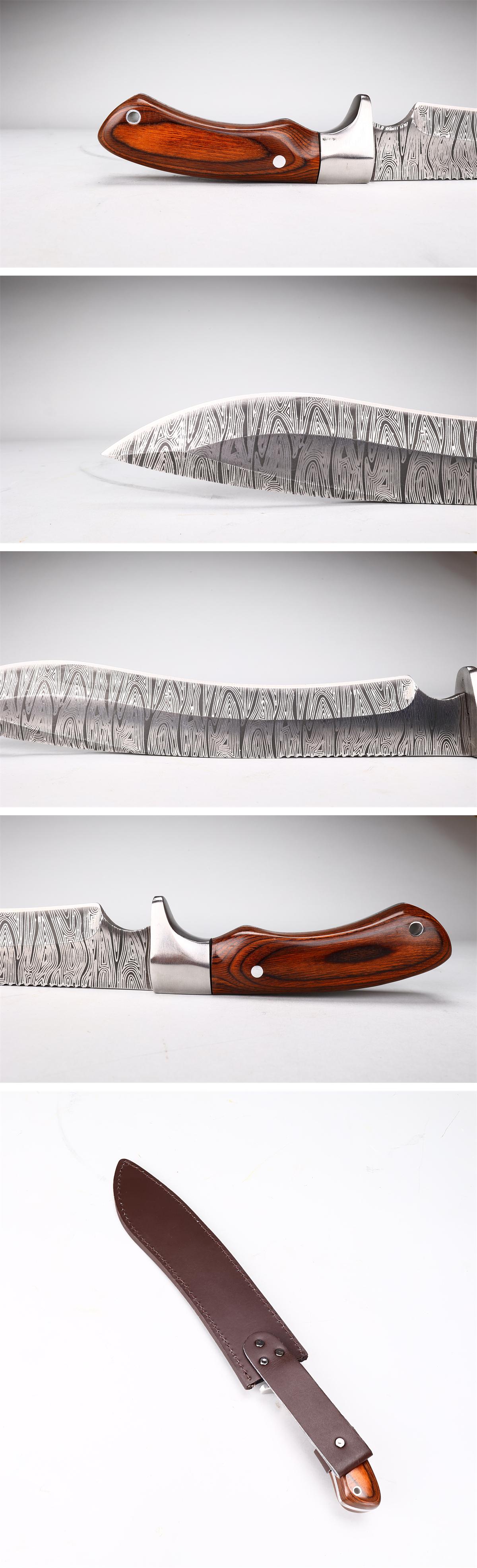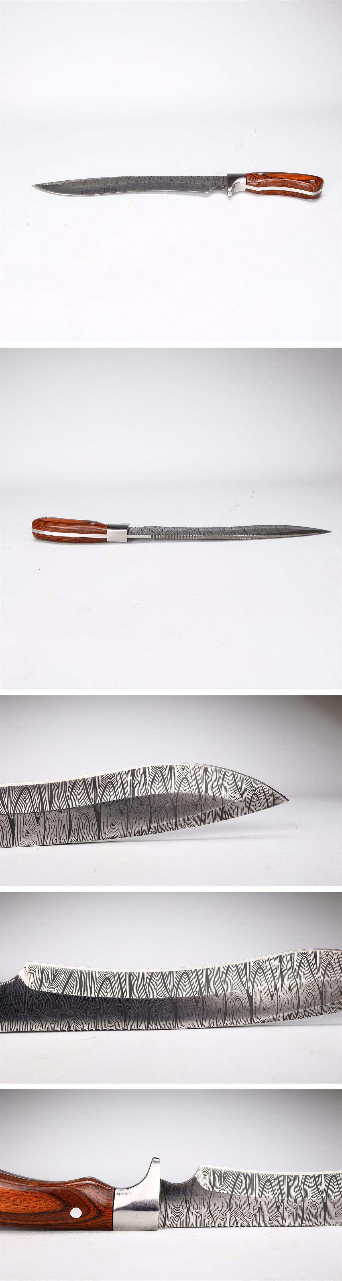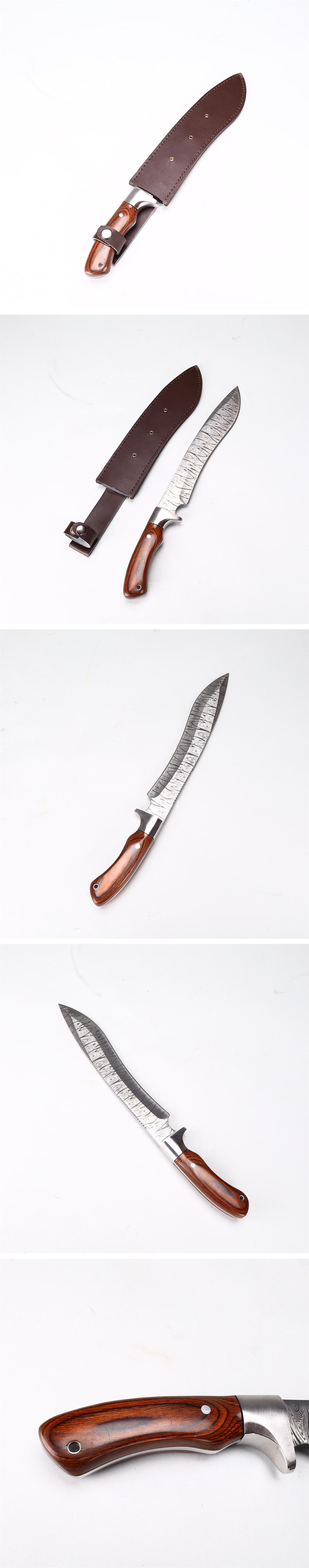 【吉】WA908 【ダマスカス鋼製】 狩猟刀 ハンティングナイフ 本体長42.5㎝/極美品S!