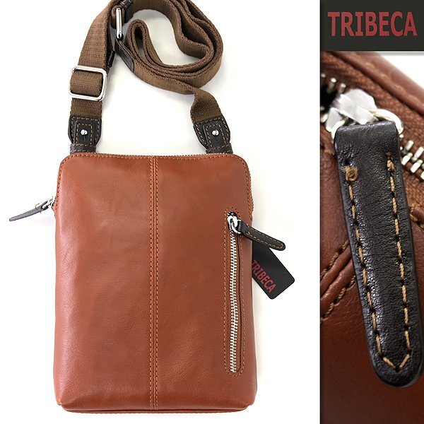 > 新品 TRIBECA トライベッカ 牛革 シュリンク レザー ミニ ショルダー バッグ 茶 【K23323】 本革 ビジネス カジュアル トラベル ブラウン