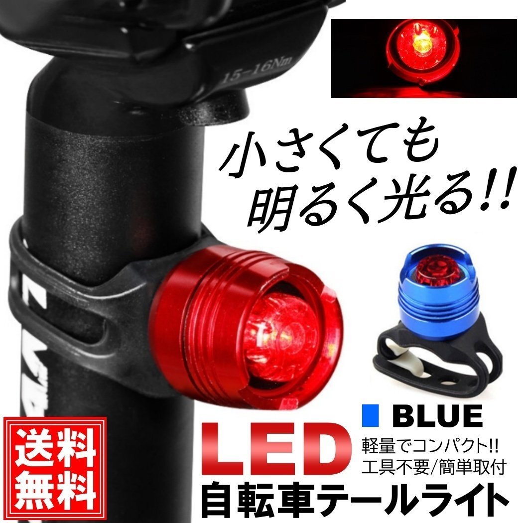 > ブルー 簡単取付 自転車 LED テールライト テールランプ リアライト 電池式 防水 小型 軽量 フロントライト サイクルライト 乾電池
