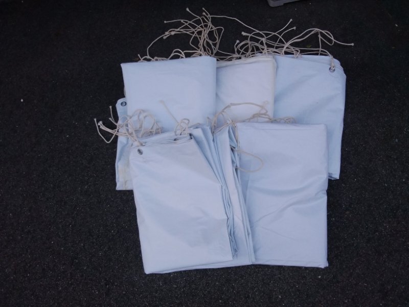 - 3 防炎カーテン 5枚 まとめて F-47-1381 防炎 シート 日本防炎協会 工事現場 解体 カーテン テント 屋台 夜店 出店