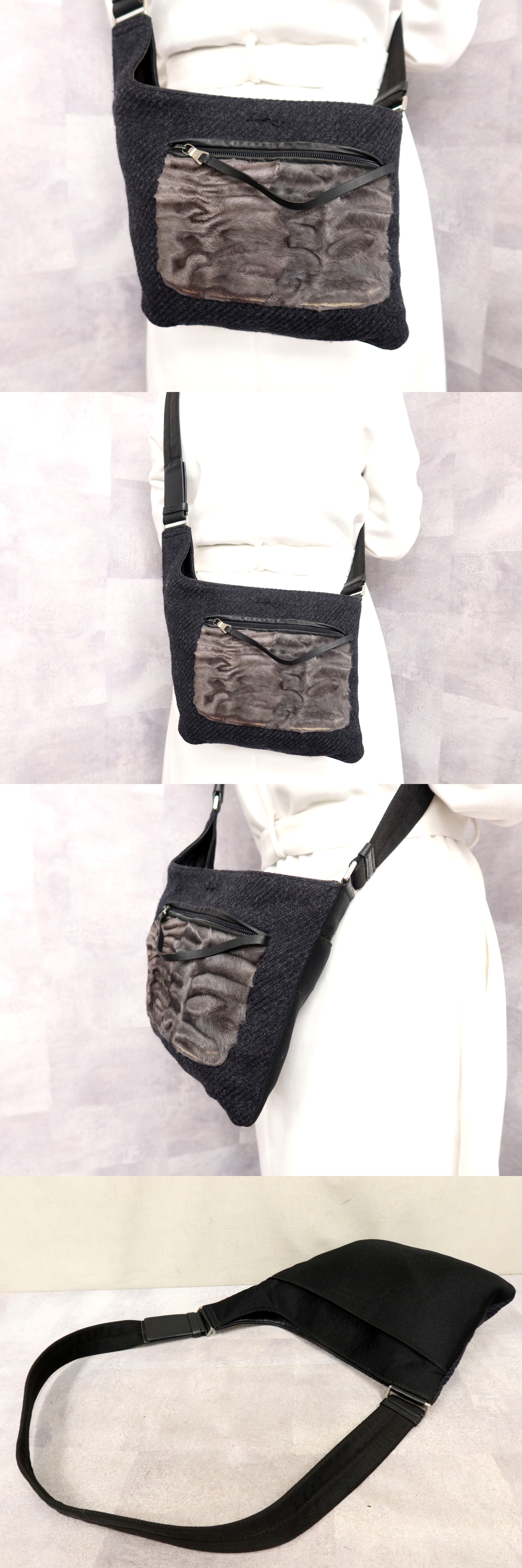 > ●超美品●PRADA プラダ●メンズ●フェイクファー ウール ポコノ ナイロン カーフ レザー 本革●ショルダー バッグ●黒●SV金具●Js62926