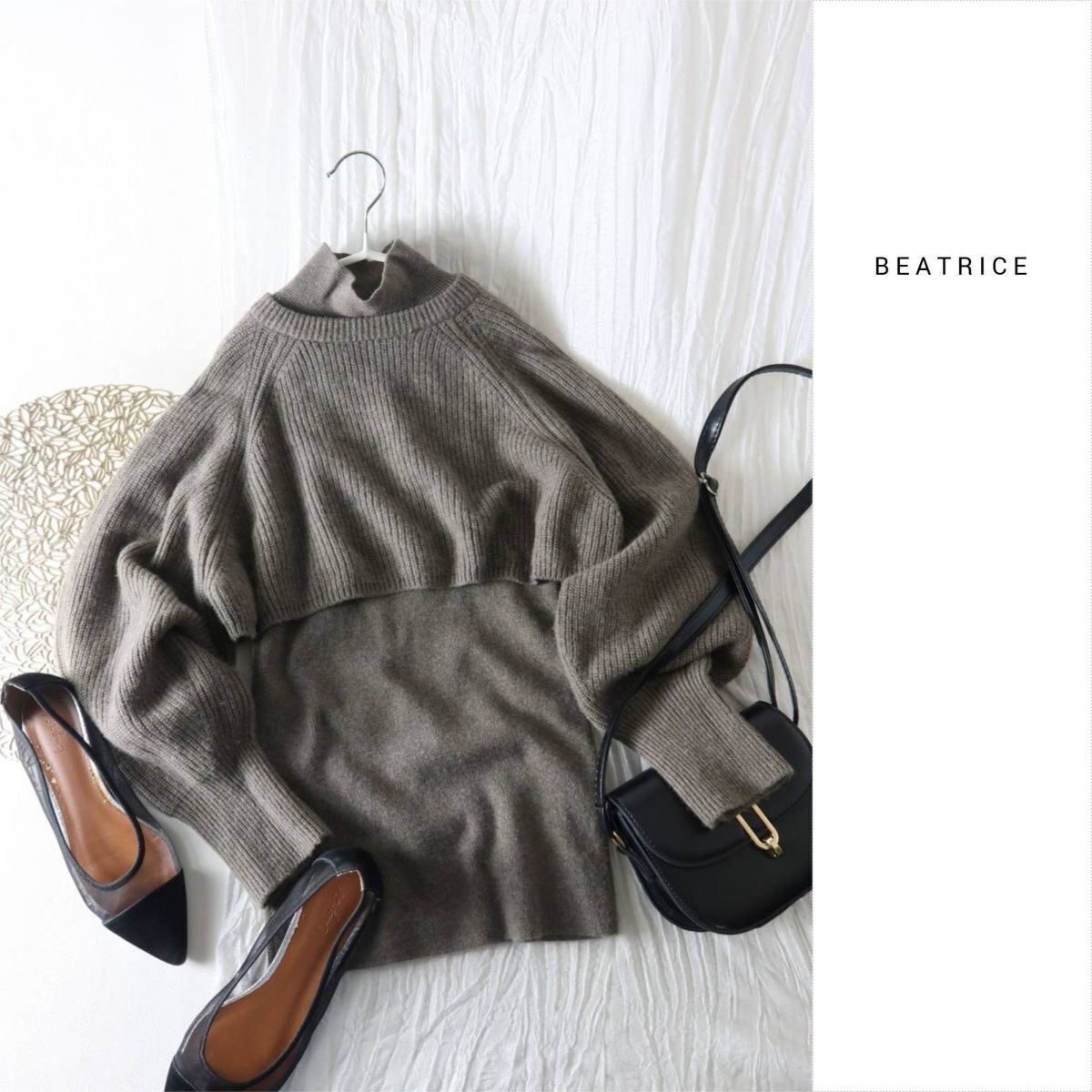> ベアトリス BEATRICE☆毛100% ショートボレロ ハイネックニット アンサンブル 38サイズ☆R-O 6063