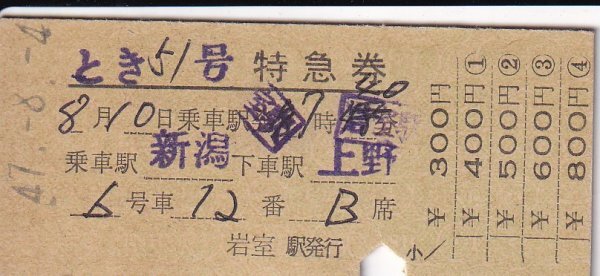 - 鉄道切符 硬券 とき 特急券 新潟→上野 岩室駅発行