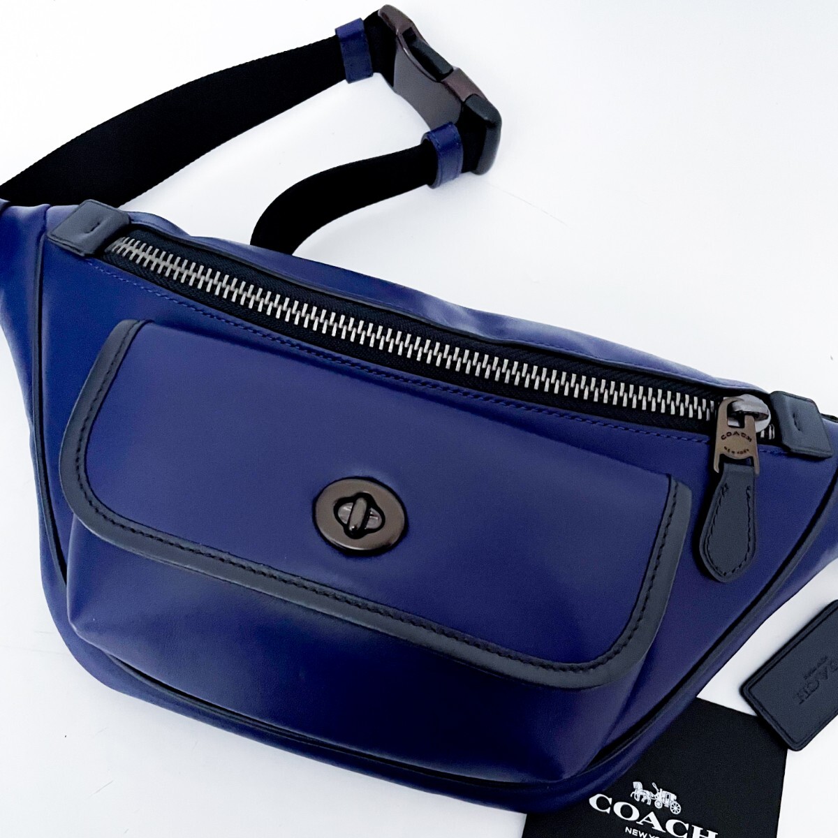 - 1円■新品同様■超希少デザイン■最高級ライン■型崩れ無し COACH コーチ ベルトバッグ ショルダー ビジネス メンズ レザー ロイヤルブルー