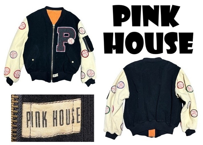 - 希少80年代ジャパンビンテージ★ピンクハウスPinkHouse★ウール・スタジアムジャンパー★ブラックxアイボリー★ユニセックス★M