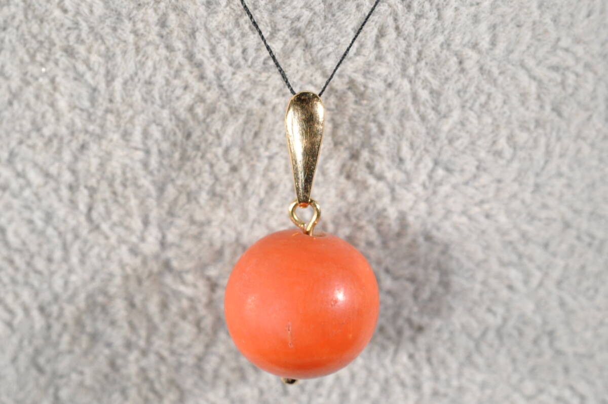- K18金具 珊瑚玉トップ / 最大径:12.1mm 重さ(K18金具含む):2.62g
