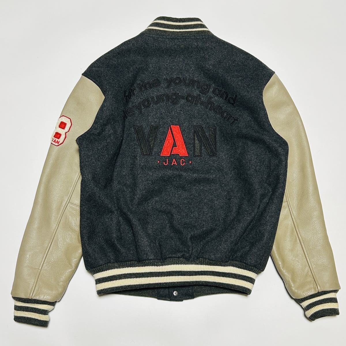 - 美品/XL相当★VAN JAC 袖革メルトンスタジャン アーチロゴ 高級 本革 カウレザー 牛革 ブルゾン ジャケット 大きいサイズ ヴァンヂャケット