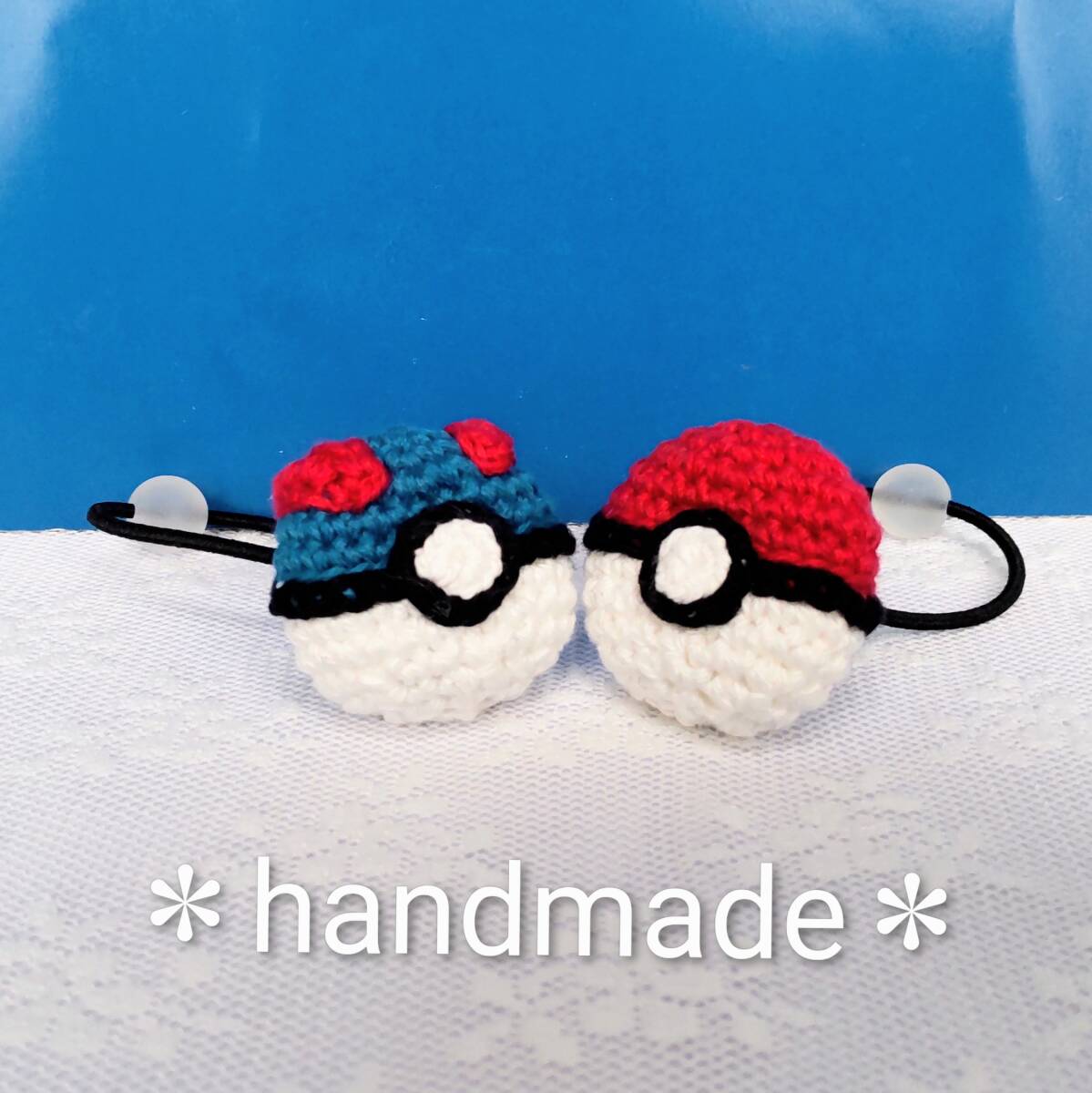 - ハンドメイドあみぐるみ★ヘアゴム2個組★モンスターボール風