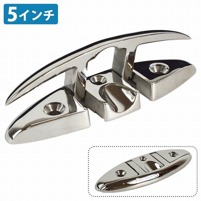 - 【送料250円】折りたたみ式 フラット クリート 5インチ 127mm 316 ステンレス製 船 ボート カヤック マリン 係留 フリップアップクリート