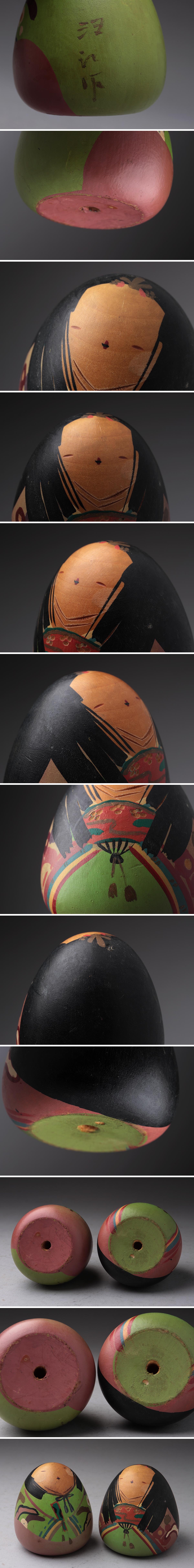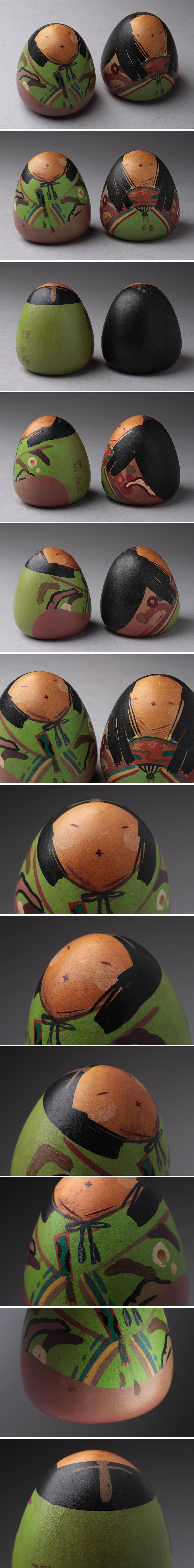 - FB408 【福島汪江 作】創作こけし 卵形「御雛様/雛人形」置物 一対 汪江こけし 床置 民芸品 郷土玩具 伝統工芸 ひな飾り