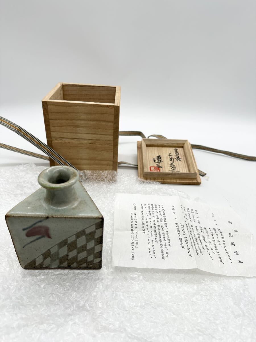 - ▽ 島岡達三 人間国宝 陶器 花瓶 花器 花入 酒器 益子焼 徳利 骨董 共箱付き 書付き 縄文象嵌 工芸品 コレクション 現状品