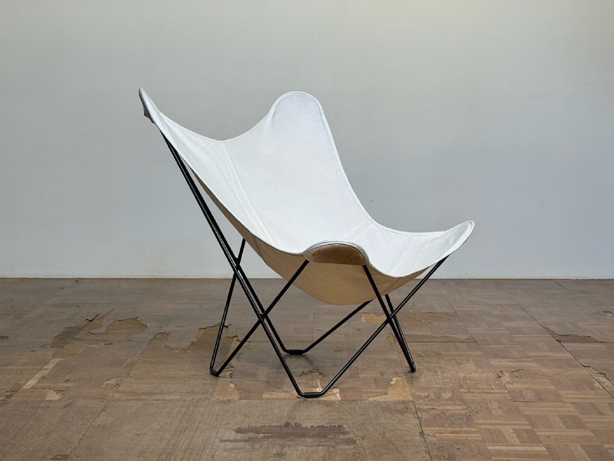 - h963|THE CONRAN SHOP. CUERO ミッドセンチュリー名作 Knoll/ノル BFK/ビーエフケー バタフライキャンバスレザーラウンジチェア|アクタス