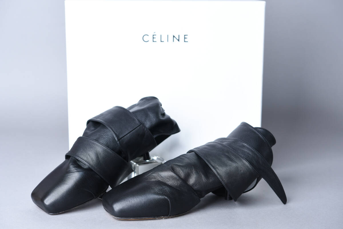 - 【SBCB/G】5938 CELINE セリーヌ アンクルラップ レザーサンダル ブラック レディース靴 サイズ36.5 イタリア製