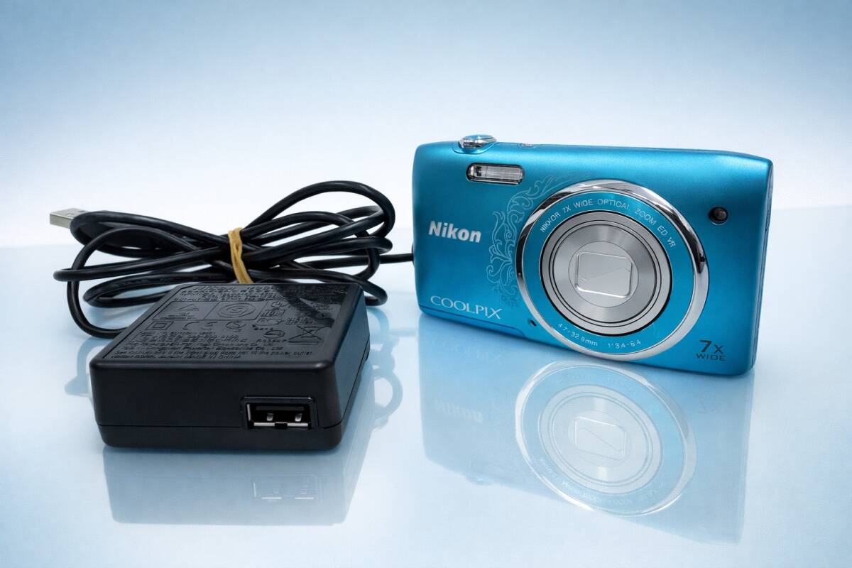 > #13334 Nikon COOLPIX S3500 コンパクトデジタルカメラ 7倍ズーム 充電器付属 コンデジ 人気機種 動作品 美品 メタリックブルー