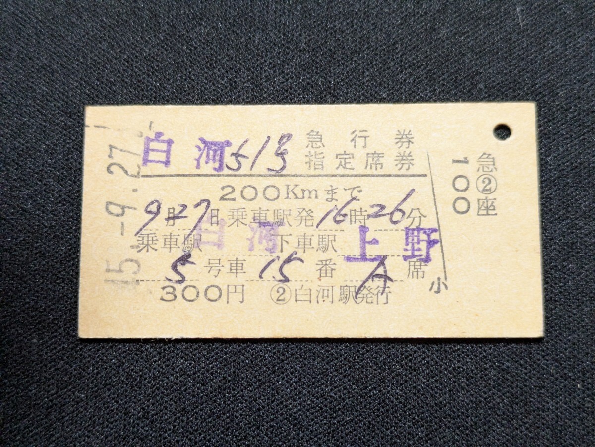 - 白河51号 急行券 指定席券 白河から上野 白河駅発行