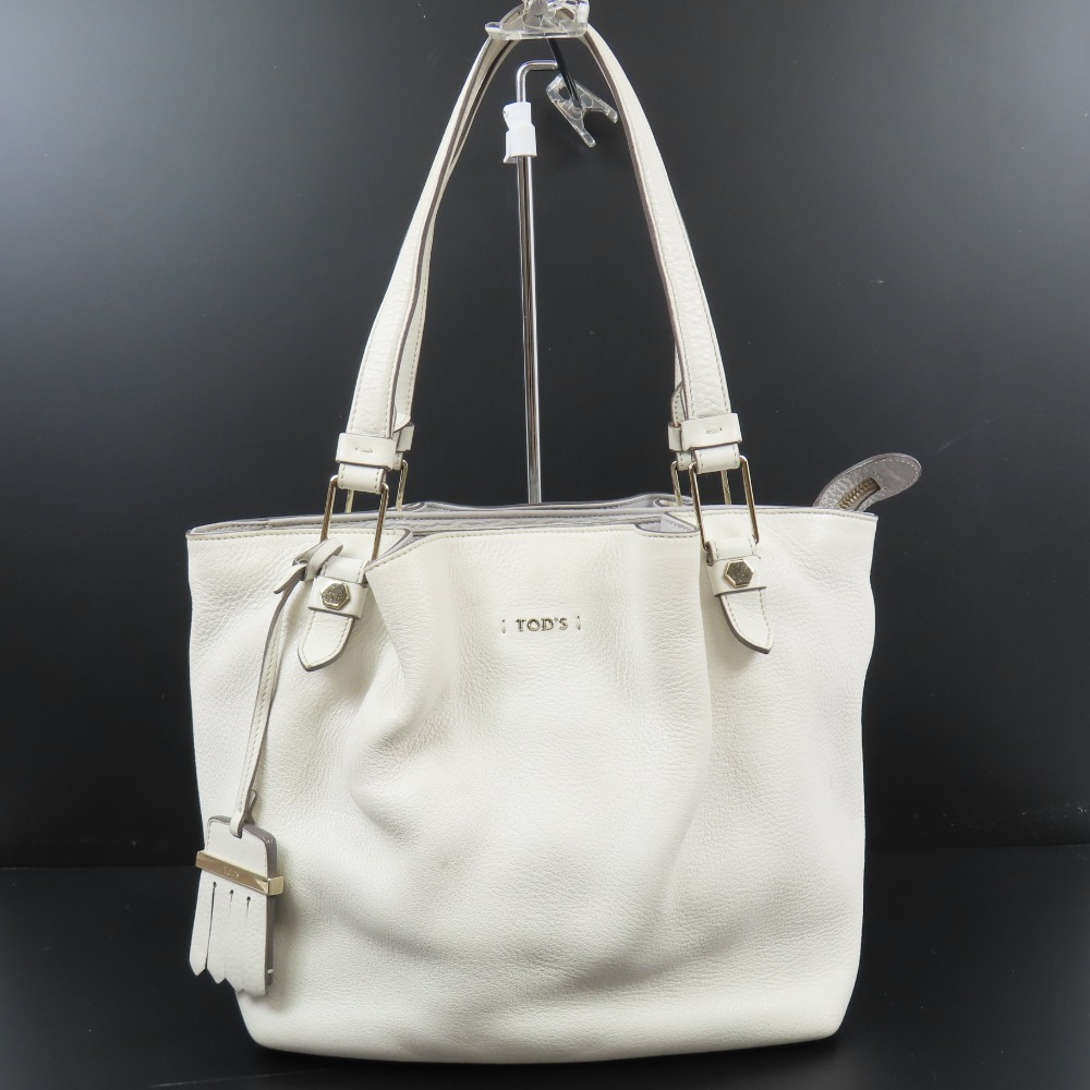 > 206930★1円スタート★TOD’S トッズ 中極美品 フラワーバッグ トートバッグ ショルダーバッグ レザー ホワイト