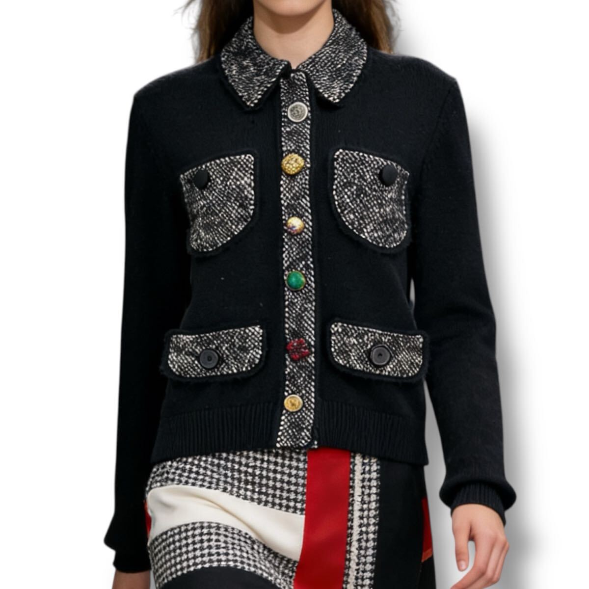 > Dolce & Gabbana ドルチェ&ガッバーナ ジャケット カシミヤ モヘア 宝石ボタン サイズ40 ブラック 中古 0330-57 AH27