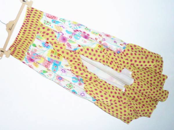 > ● MANOUSH マヌーシュ マキシスカート 36 SM フリル 新品 ウエストゴム 花柄 水玉 サイケ ユニーク 華やかなデザイン 白 ロングスカート