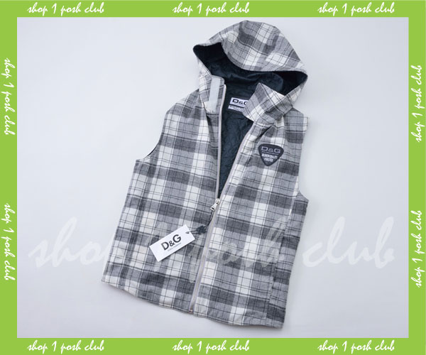 - D&G【RBQ47T】白xグレーパーカーベスト*46*ブルーグレー