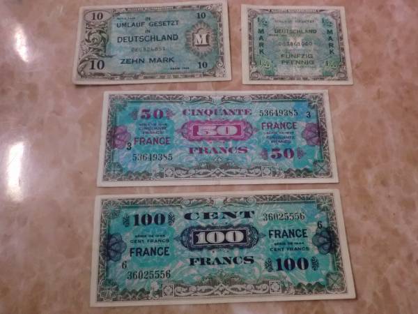 - ★ フランス軍票50・100フラン / ドイツ軍票1/2・10マルク 4種 ★ No.305