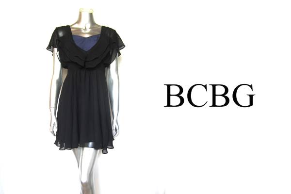 > 二点落札で送料無料! B43 未使用品 BCBG ビーシービージー 半袖 ワンピース M ブラック レディース 黒 ミニ フレアー