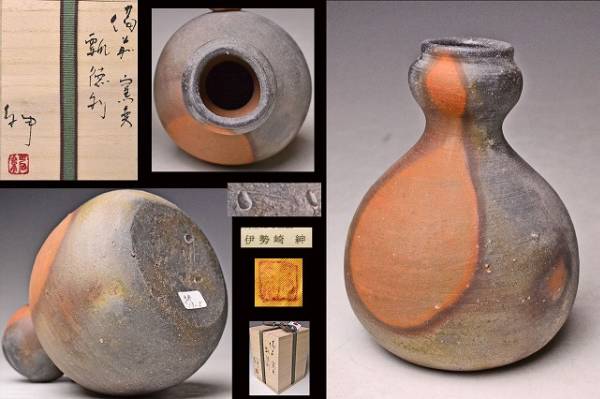 - 伊勢崎紳 ★ 備前窯変瓢徳利 ★ 共箱共布栞 ★ 検 人間国宝 伊勢崎淳 伊勢崎満
