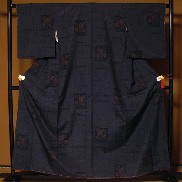 - 正絹 新品・未着用 仕付け糸付き 大島柄 塩沢紬 美品 -袷-