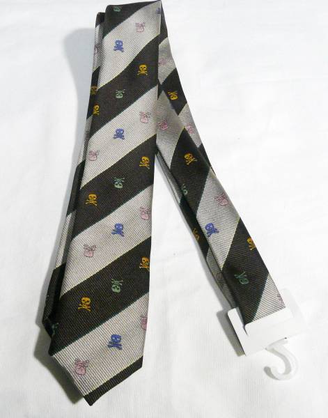 - 日本製/国産スカル骸骨柄/デッドレジメネクタイ細身/焦げ茶x銀